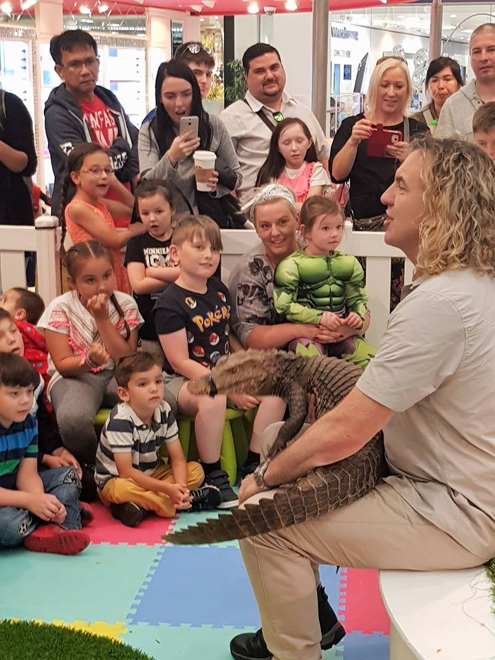 Dave takes individual classes or groups of around thirty students and explains how the animals hunt, how they perceive the world, how they use their senses, eat, and catch their prey. The students then have the unique experience of handling and touching a crocodile, tarantulas, scorpions, snakes, and large lizards.